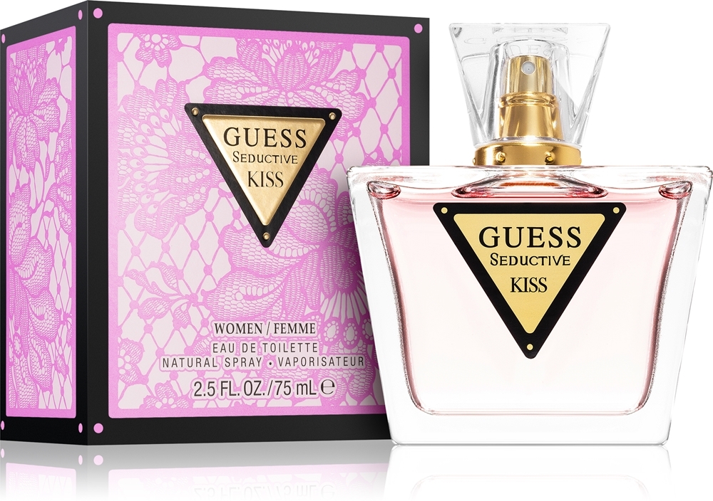 Флакон розы из полной коллекции Seduction. Выпущенная в 2020 году женская туалетная вода Guess Seductive Kiss неотразима с первого взгляда. Она не боится сделать первый шаг и дарит сладкие поцелуи, когда ей этого хочется.